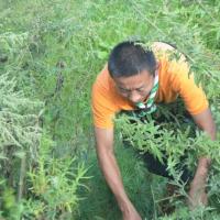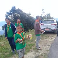 Later at afternoon, after the school hour 58 scouts and 6 Scout Masters went for clearing the bushes and caring the "Thujia" saplings (which was planted by Gewog Forestry Department but was not attained) along the School-Trashyang road. Total of 86 saplings were cared.