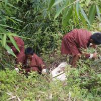 The cheychey scouts were engaged in mass cleaning of the school campus and areas nearby school, which was followed by plantation along the landslide prone zones below the playground.