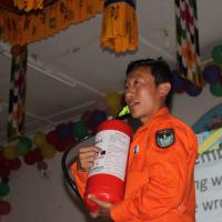 During afternoon session, scout masters trained as Desuup (De-sung is the program initiated by His Majesty the king, Jigme Khesar Namgyal Wangchuk to combat the natural disasters) along with other Bartsham Desuup trained whole participants about how to improvise stretchers and fight fire using fire extinguisher in case of emergency.