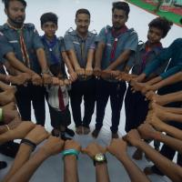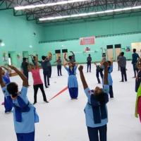 Yoga formation by scout, guide regading International yaga day celebrated at railgaon, allahabad,