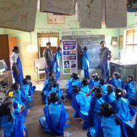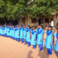 There is is a special school near panruti @ Kadampuliyur that is for who need care & they are denied studying by their parents that is why they dropout their school.the govt run for that children & we like to give them an opertunity to know scouting & guiding .So, the district SSA CEO arranged a free camp for two days .We four SMs @ Two GCs went to give them basics on scouting. First of all they were given free uniforms .they enjoyed the training very much . totally 65 children & 10 staff took part in that program. It is a training camp as well as a service camp. Each day , From 9-am to 5 -pm the camp was going on .they learn scout activities , songs, games happily.the training will come to end today itself .We too get a wonderful happiness & joyous .The second day the camp was leaded by Mrr. Senthil Kumar LT(S) & Mrs Girija HWB (G) & by me too.many programmes were introduced such as first aid,wood craft signs ... action songs ,wide games also ... the girls were overflowed with joy in that camp. Every girl in that school are now ready to continue to swim the Ocean of Scouting .