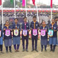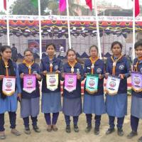 বাংলাদেশ স্কাউটস, দিনাজপুর জেলা রোভার মুট এ বিভিন্ন চ্যালেঞ্জ এর পুরষ্কার সহ গ্রুপ ছবি।