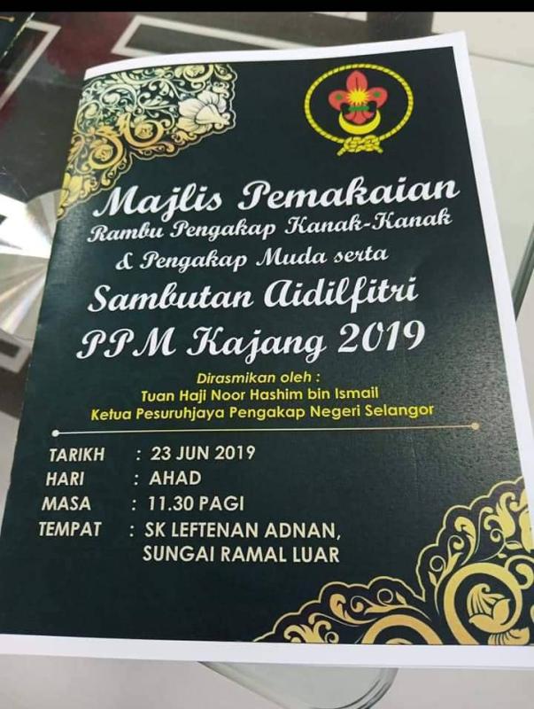 Majlis Pemakaian Rambu PKK Dan PM & Jamuan Raya Aidilfitri PPM Daerah Kajang 2019 mengambil tempat di SK Leftenan Adnan,Sungai Ramal Selangor pada 23 Jun 2019.Tujuan program ini diadakan adalah bagi memberikan pengiktirafan kepada seramai hampir 300 orang ahli PKK serta PM yang berjaya memperoleh Rambu PKK serta PM.Seramai kira kira 25 orang sukarelawan yang merupakan Calon Pengakap Raja Daerah Kajang turut hadir membantu bagi melancarkan aktiviti program.