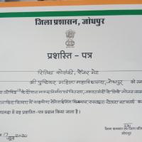 जोधपुर जिला कलेक्टर श्रीमान प्रकाश राजपुरोहित द्वारा कोविड-19 में उल्लेखनीय सेवाएं देने हेतु प्रशस्ति पत्र प्रदान कर सम्मानित किया|