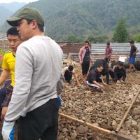 JMSS Nazhoen scouts offer their spirit of volunteerism sacrificing their Saturday and Sunday to demolish school's old, congested and smudged kitchen and raise an extended, spacious one. The school scouts commissioner and scout leaders helped them with plans and materials.