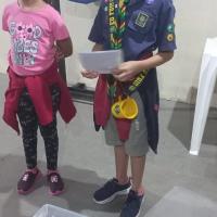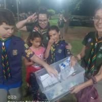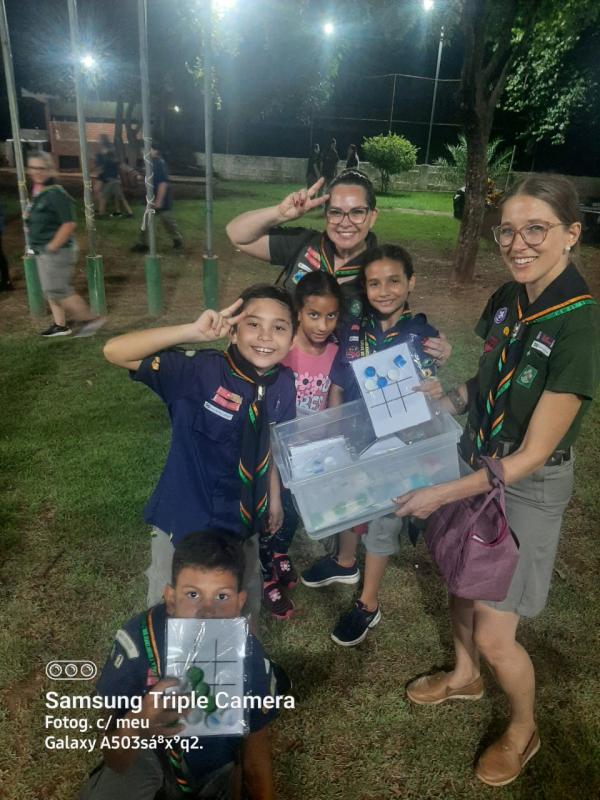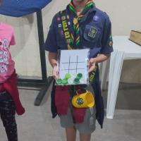Durante dois meses, Isabela se dedicou a coletar as tampinhas. Então, em uma tarde produtiva, ela as transformou em diversos jogos, que foram distribuídos e fizeram a alegria de toda a Alcateia na reunião do grupo.