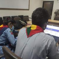 জোটস এর কেন্দ্রীয় নিয়ন্ত্রণ কক্ষে কাজ করছে রোভার স্কাউটরা।