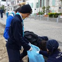 The scouts walked through the coast and while walking, they cleaned the route, beaches,...etc