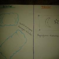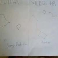 Today's duty is that " sit, if possible, lie on ground on daytime and at night, watch the sky. Draw the most intersting star group at nihgt and the most interesting clouds on daytime. Please add the name of them, if posssible..."