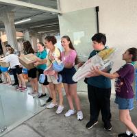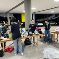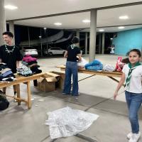 Jovens e chefias pediram contribuições pela cidade e escolas, alguns jovens como Benjamin e Olivia, Manuela e Ana Clara, fizeram campanha nas escolas com cartazes feitos por eles e trouxeram as arrecadações para os pontos de coleta que enviavam ao estado, escalonando as doações, saindo de carro pelos bairros pedindo e buscando doações. Também ajudaram na triagem dos itens, montagem de kits de higiene, separação das roupas por tamanho.