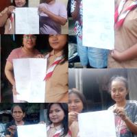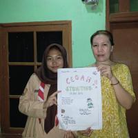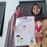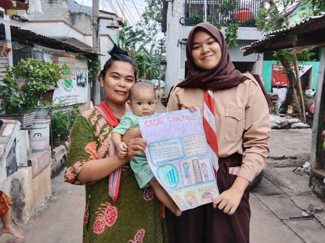Para pramuka di SMK Mitra Nusantara ditugaskan untuk mengkampanyekan anti stunting kepada para ibu dengan media poster dan komunikasi yang baik agar mereka lebih peduli terhadap gizi anak-anak mereka