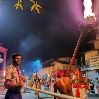 In this year with the outbreak of covid-19, public were not allowed to watch the perahara and it was held from 25th July to 4th August with strictly adhering to the health and safety measures according to the guidelines of the Ministry of Health. So in this year, only rover scouts and scout leaders of Kandy District engaged in first aid service for the artists in perahara.