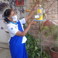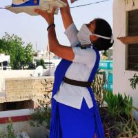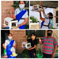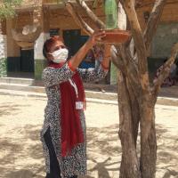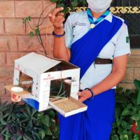 पक्षियों के लिए बहुउद्देशीय पक्षी घर , चुग्गा पात्र, व परिन्दे लगाते हुए