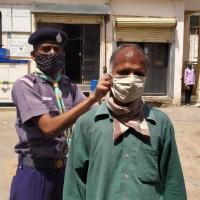 कोरोना महामारी के अंतर्गत मास्क बनाना और वितरित करना