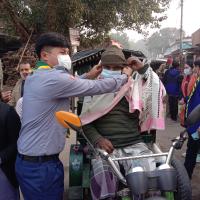 রাজশাহী বিশ্ববিদ্যালয় রোভার স্কাউট গ্রুপ এর পক্ষ থেকে গত ৩১জানুয়ারি ২০২১তারিখে মাস্ক বিতরণ করি।আমরা কয়েকটি জায়গা বেছে নিয়ে কাজ শুরু করি।প্রথমে রাজশাহী বিশ্ববিদ্যালয় রেলস্টেশন বাজারে কয়েকজন রিকশা চালকের মাস্ক দেওয়া হয়।উনারা বিশ্ববিদ্যালয়ের মধ্যেই রিকশা চালিয়ে জীবিকা নির্বাহ করেন।