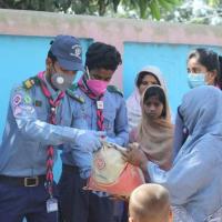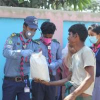 করোনা মহামারীতে অসহায় মানুষদের পাশে দিনাজপুর জেলা রোভার।