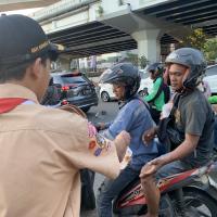 Terletak tak jauh dari sekolah kami, proses menuju lokasi menggunakan kendaran taksi daring dan di lokasi membantu persiapan, pembagian hingga merapikan lokasi agar terbebas dari sampah dan kembali dalam kondisi awal yang bersih tanpa mengganggu pengguna jalan