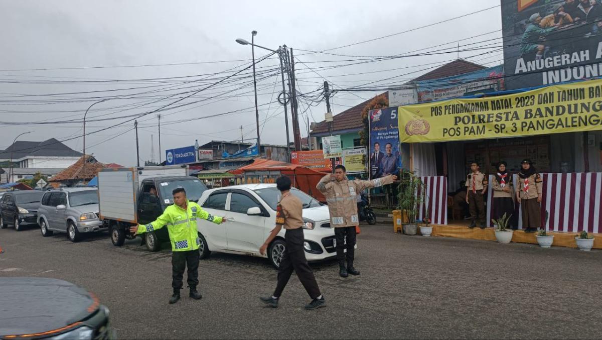 Kwartir Ranting Pangalengan with Directions from the district civil service kwarcab. Bandung Carrying out Nataru work activities in the central area of Pangalengan city. by deploying personnel from Saka Bhayangkara and collaborating with the Pangalengan sub-district police