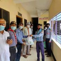 কুমিল্লা জেলা রোভারের পক্ষ থেকে হ্যান্ড স্যানিটাইজার বিতরণ