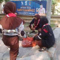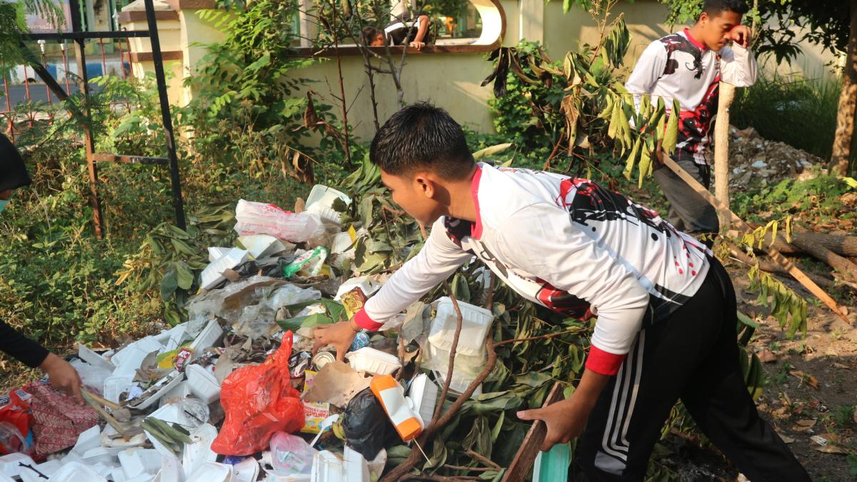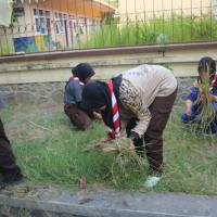 Kegiatan kerja bakti di gedung pramuka