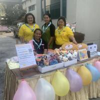 ปฏิบัติหน้าที่ประจำบูธกิจกรรมร่วมสนุกรับของรางวัล ร่วมกับครูและนักเรียน ภายในงานกิจกรรมกีฬาสีดอกแก้วเกมส์ ปีการศึกษา 2562