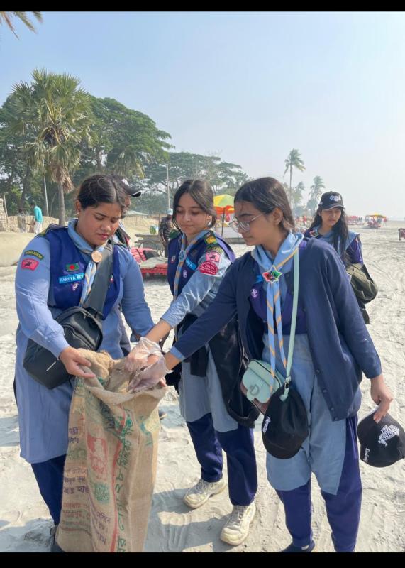 Kuakata, a stunning destination in the south, served as the perfect backdrop for our group camp, where our mission went beyond camping focusing on beach clean-up and raising awareness about plastic pollution. Rovers and Girl-in-Rovers came together to eliminate plastic waste while educating the community on the importance of recycling. United, we took a meaningful step toward a cleaner, greener future