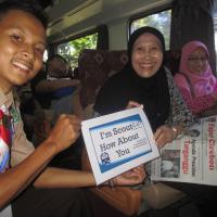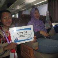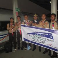 This is the last peace journey in 2016, because the project was started since December 2014 until now. The journey took place from Cirebon Railway Station to Cilacap in Central Java, Indonesia. As usually the participants of SJFP spreading the peace messages to the passengers of Purwojaya Train. One of the participant of SJFP namely M. Rojab helped to bring the tourist's suitcase from Barcelona who will take holiday in Cilacap Island. We also bring the happiness to the children by giving the Origami for them, sometimes the participants give the Daily Newspaper of Fajar Cirebon, freely. Besides that, we also promote the messengers of peace sign to all the people in Nusakambangan Island, one of the historical island in Indonesia since colonial era, because there are many old caves and the prison for a criminal. In this case, we as a team want to say thanks to all the people who has support the project, Kwartir Nasional Indonesia, Kwarda Jawa barat and also Kwarcab Cilacap who always support our activity. Kak Venny the MoP Project Manager for her support, and to all the scouts who has join the project since the first until the last journey. Mr. Prassana, Mrs. Cynthia Marquez and Kak Carol Wong, thanks for everything. Hopefully this project can inspire the scouts in the world to bring and share the happiness to all people by giving what we have (skills, smiles, attitude and also the peace). Thank you so much for your kindness. We are scouts, the messengers of peace who bring the happiness and peace for a better world.