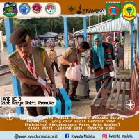 Sesuai Surat Keputusan Ketua Kwarcab Gerakan Pramuka Buru Nomor 03 Tahun 2024 Tanggal 25 Maret 2024 Tentang Pembentukan Satuan Tugas Cabang Karya Bakti Lebaran Tahun 2024 Kwartir Cabang Gerakan Pramuka Buru. Pembekalan peserta didik pada Tanggal 28 Maret 2024, selanjutnya Pengukuhan Satgas Cabang KBL 2024 oleh ketua harian pada tanggal 3 April 2024 dilanjutkan aksi untuk H-7 s.d H+7 Lebaran. Posko satgas KBL 2024 menyiapkan tempat beristirahat & layanan informasi keberangkatan kapal ferry.