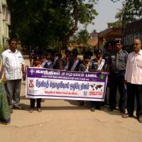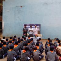 03-02-2014 திங்கள் கிழமையன்று கருத்தரங்கு மற்றும் பேரணி நடைபெற்றது.கடலூர் மாவட்ட தலைமை மருத்துவ மனையிலிருந்து வருகை தந்த மருத்துவம் சாரா மேற்பார்வையாளர் திரு.சந்திரசேகரன் -துணை இயக்குனர் அலுவலகம்- அவர்கள் கலந்துகொண்டு சாரணார்களுக்கு தொழுநோய் குறித்த விவரங்களைக் கூறினார் . தொழுநோய் பரவும் விதம் ,கட்டுப்படுத்தும் முறைகள் , அரசின் பங்கு , பொது மக்களின் கடைமைகள் , சாரணார்கள் மற்றும் தன்னார்வத் தொண்டு நிறுவனங்களின் பங்கு ஆகியன குறித்து கருத்துரை வழங்கினார். மாணவர்களின் ஐயங்களுக்கு விளக்கமும் அளித்தார் .கருத்தரங்கின் இறுதியில் பேரணி நடைபெற்றது.பேரணியை பள்ளியின் துணை தலைமை ஆசிரியர் துவங்கிவைத்தார். பண்ருட்டியின் முக்கிய தெருக்களின் வழியாக சென்று சாரணார்கள் பொது மக்களுக்கு துண்டுப்பிரசுரங்கள் வழங்கி விழிப்புணர்வு ஏற்படுத்தினர்.