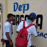 ROVER SCOUTS AND SENIOR SCOUTS OF BAGACAY NATIONAL HIGH SCHOOL INITIATED THE LETTERING OF THE SCHOOL SIGNAGE. FUND CAME FROM SOLD PLASTIC BOTTLES AND SCRAP MATERIALS TO FUND THE PROJECT.
