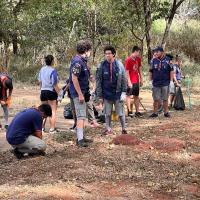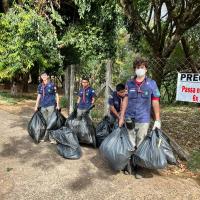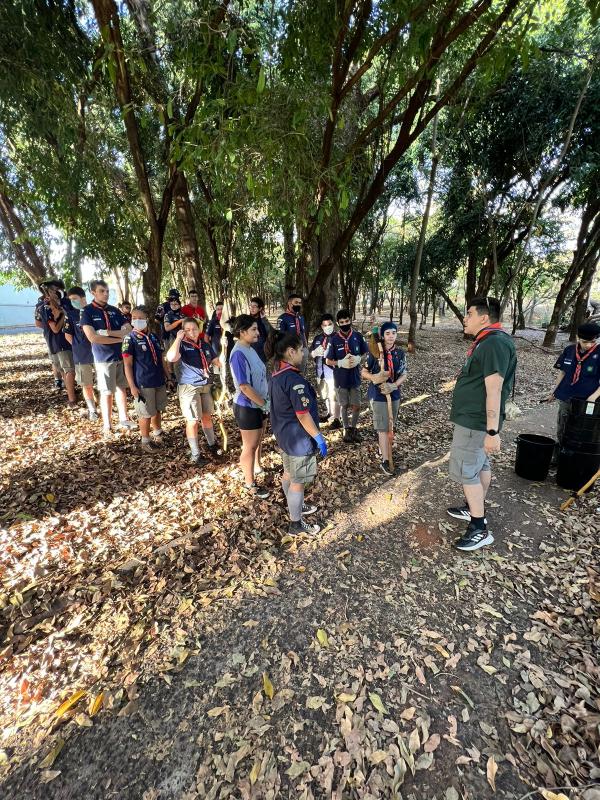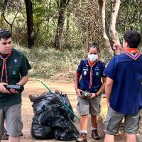 Primeiro, foi feita uma limpeza do bosque onde todos os escoteiros estavam equipados com luvas grossas para que a segurança de todos fosse preservada recolhendo lixos pequenos e juntando os entulhos maiores para que esses pudessem ser posteriormente retirados pela prefeitura