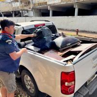 Foi retirado do bosque mais de 11 sacos de 100L de residuos plasticos, tambem foram retirados restos de moveis que foram deixados la