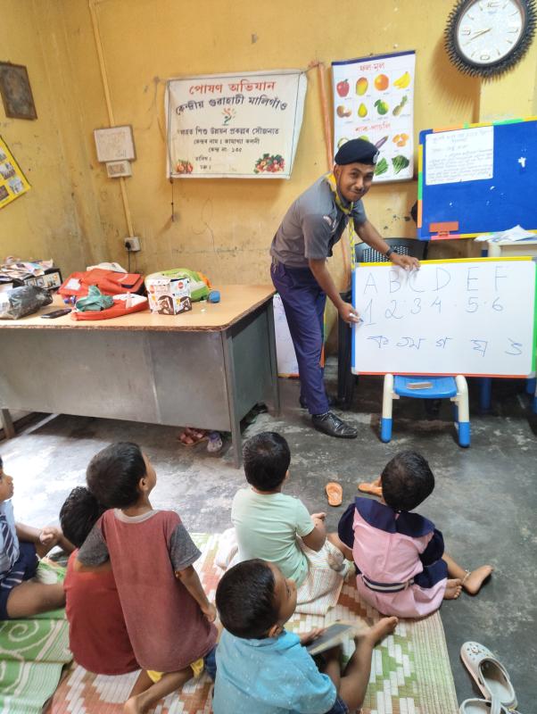 First we discuss with our crew members to do a literacy project in our locality .Then we decided a date for the project i.e.02.09.25. On that date we invited children of our new generation in our locality than we start our class ,the class is about to teach them alphabet ,Numbers, hindi sarvana etc . After the class ended the children enjoy the class than we start a 1/2 hour game period .we play with them and make them happy .The games were-Chocolate catching,eyes cover etc .