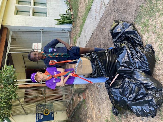 We cleaned the rubbish at our Scout Hall in Hout Bay. Our parents assisted us with transport and to take the rubbish to the dump.