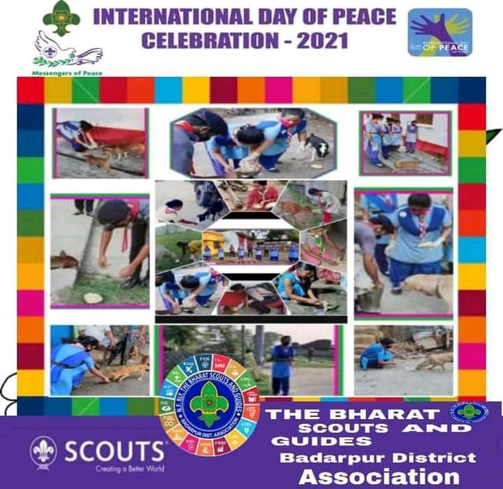 We the members of Badarpur district association created a small fund for feeding the street animals.We contributed as much we can ,our district officials and unit leaders also contributed for that.On the International Day of Peace we started from the scout hut area and feed the street animals.We went to various places of Badarpur town and where ever we found any animals we feed them at that place.