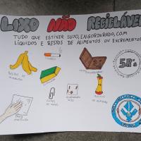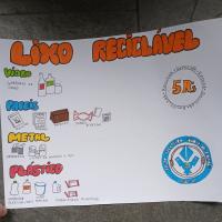 Primeiro fiz uma apresentação sobre o lixo reciclável, o que é sustentabilidade, os 5rs e quais consequências temos se não separarmos o lixo. Depois coloquei dois cartazes indicando qual é o lixos reciclável e qual é o lixo não reciclável. Também fiz um calendário com informações sobre os lixos, como descartá-los e em qual classificação se encaixam (orgânico, vidro, papel, plástico etc..)