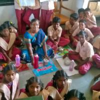 Step -5 Dining mat ready.My students make the mat ourselves and write our name and use enjoyed.