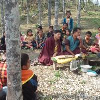 Nachung scouts of Lingden Primary School hoisted prayer flags at Majuwa Village with villgers. The village Lama consecrated the flags.