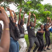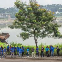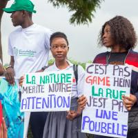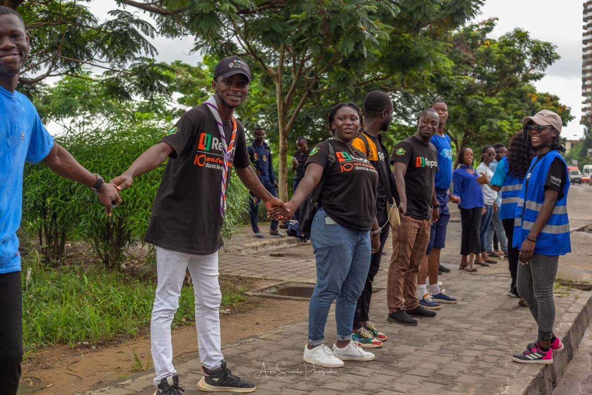 Venus tous les quatre coins de la Côte d'Ivoire, les jeunes scouts et bénévoles de diverses organisations de jeunesse , nous nous sommes retrouvés tôt le matin dès 08H sur les bords de la gare lagunaire Abidjan Plateau pour cet événement. La chaîne humaine fût formée long de l'esplanade lagunaire du Plateau après des séances de jeu . Avec des pancartes de sensibilisation en main pour dire : " Non à la population plastique "