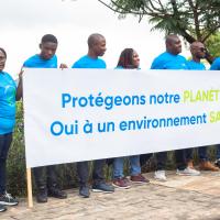 À l'occasion de la journée mondiale sans sac plastique célébrée les 03 Juillet , une chaîne humaine de lutte contre la pollution plastique fût organisée.