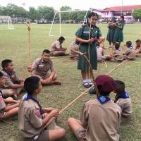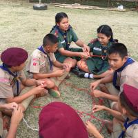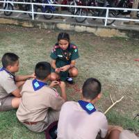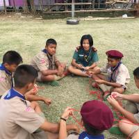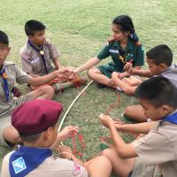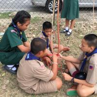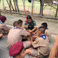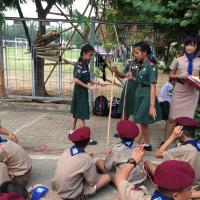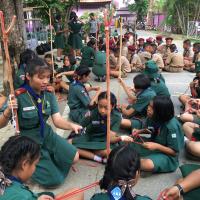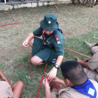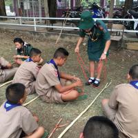 ลูกเสือผู้นำสันติภาพโรงเรียนท่าม่วงราษฎร์บำรุง ให้บริการกองลูกเสือ ปฏิบัติหน้าที่ผู้ช่วยผู้กำกับลูกเสือ ช่วยสอนทักษะการผู้เงื่อนให้กับลูกเสือรุ่นน้องในกองของตน