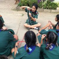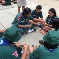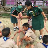 นำลูกเสือผู้นำสันติภาพ โรงเรียนท่าม่วงราษฎร์บำรุง กาญจนบุรี ประเทศไทย ให้บริการกลุ่มลูกเสือ เป็นผู้ช่วยผู้กำกับลูกเสือ ทำหน้าที่สอนการผูกเงื่อนให้กับลูกเสือรุ่นน้องในกองของตน