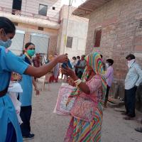 राशन वितरण के समय लाइनों में लगे लोग जिनके मास्क नहीं लगा था उनको मास्क बाटकर, मास्क हमेशा लगाये रखने के लिए किया जागरूक इस कार्य में सुरभि ओपन र्रेंजर टीम की रेंजर लीडर पार्वती दाधीच, रेंजर प्रियंका दाधीच, पुष्टिकर कोलेज टीम से सुमन दाधीच , भावना वैष्णव सहयोगी के रूप में मोजूद थे