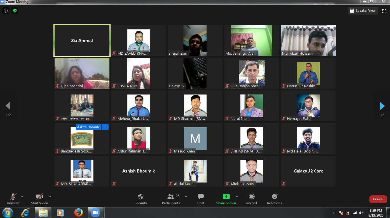 গত ১১/০৮/২০২০ ইং তারিখ জুম মিটিং এর মাধ্যেমে অনুস্ঠিত হয়েছে বাংলাদেশ স্কাউটস, মানিকগঞ্জ জেলা স্কউটস হতে যে সকল কাব স্কাউট অঞ্চল পর্যায়ে শাপলা কাব এওয়ার্ড পরীক্ষায় অংশগ্রহণের সুযোগ পেয়েছে তাহারা কি ভাবে জুম মিটিং এর মাধ্যে অঞ্চল পর্যায়ে পরীক্ষা দিবে উক্ত বিষয়ে একটি মতবিনিময় সভা অনুষ্ঠীত হয়।