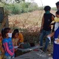 मास्क बाटते हुए स्काउट गाइड केप्टन जयलता माधव
