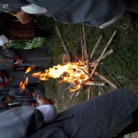 Trying to make fire using natural things like stones, sticks and bamboos la. It is so hard to get fire from those things we need our full energetic and coperations.