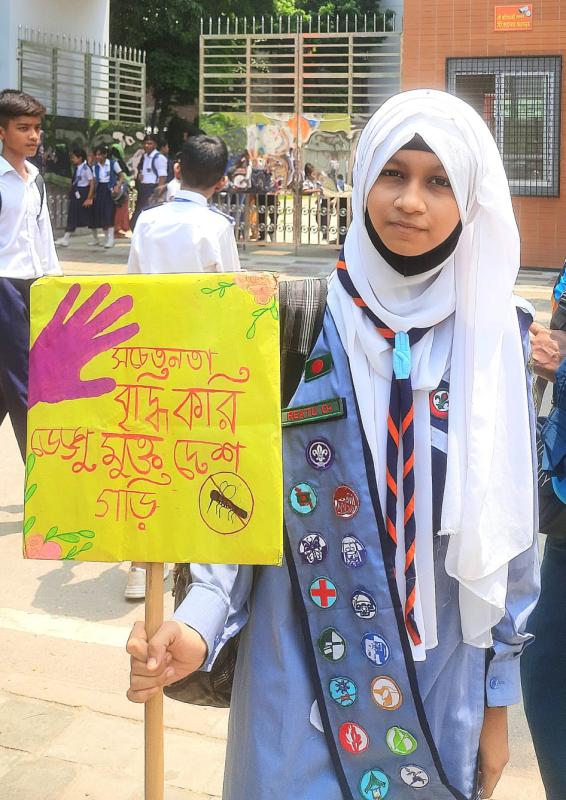 Our Unit leader gathered us to make people aware about dengue and Clean some areas . We also make placards by ourselves and Did a rally . We contributed Poster about dengue like how to prevent dengue, What are the hints to know a person have dengue etc