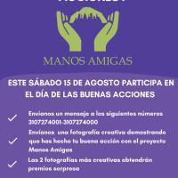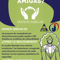 en Nariño especialmente en la ciudad de Pasto por cuestiones de la pandemia causad por el covid-19, y ante la mirada atónita viendo como algunas personas en especial adultos mayores se morían de hambre al no tener un trabajo o ayuda externa es así que Manos Amigas decidió a recolectar donaciones alimentarias para así poder brindar un poco de alivio a estas personas, es así que mas de 150 personas fueron beneficiadas con paquetes alimentarios .