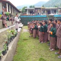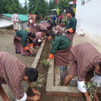 57 Nazhoen Scouts and 32 Nature club members of Jangchubling LSS marks Social Forestry Day with plantation of 49 ornamental plants and transplantation of 73 on-campus various tree saplings as a tribute to the Coronation Day of the Beloved Fourth Druk Gyalpo Jigme Singye Wangchuk.