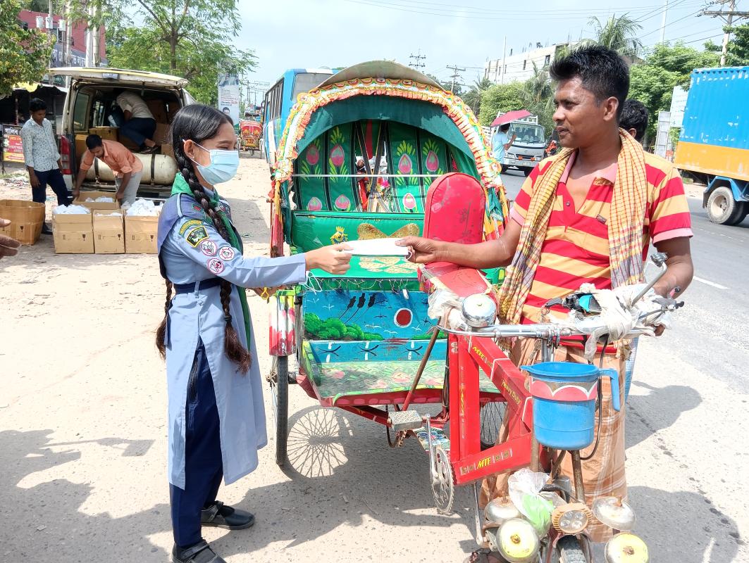 For this purpose some of us scouts bought 500 masks with personal funding and distributed them to people for free. With this I made people aware about the benefits of wearing masks. I encouraged everyone to wear masks. Everyone praised this program. We did this program for 2 days and 8 hours.